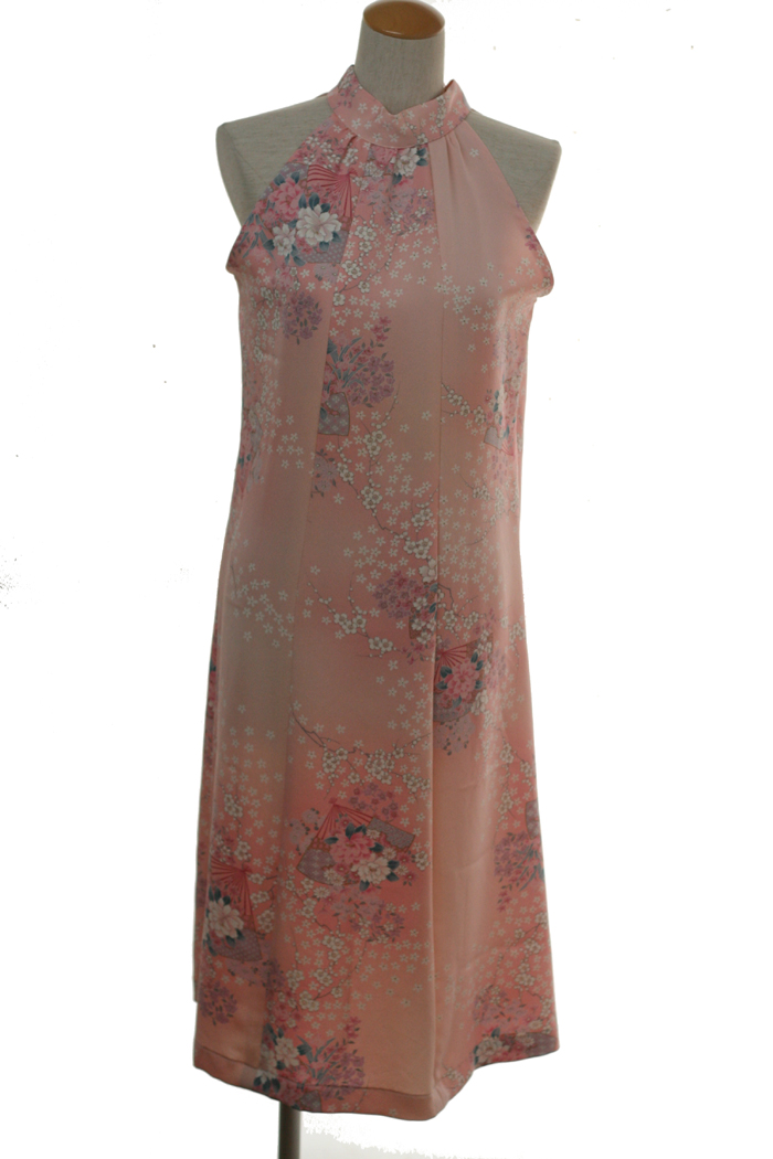鮮やかなピンクの着物を使ったワンピースです。