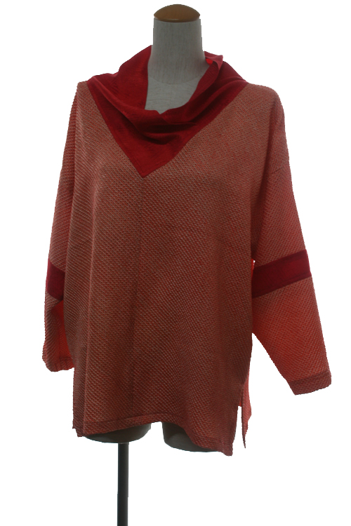 鮮やかな赤の絞りを使用した、一番人気のブラウスです。